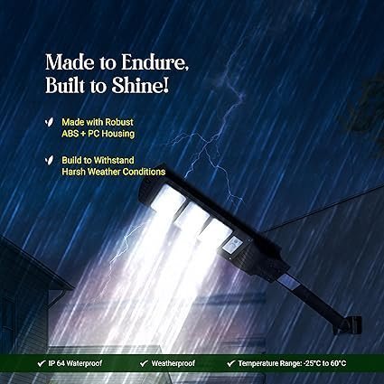 - Rugged & Weatherproof Construction Crafted with robust ABS housing, IP44 waterproof certification. Built to withstand rain, dust, and temperature variations from -25°C to 64°C for year-round outdoor reliability.