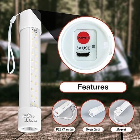 • EASY INSTALLATION – Emergency Rechargeable LED Tube light very useful for study room, bedside, Wardrobe, Kitchen cabinet, shoe cabinet, desk, dormitory. Portable Light for camping, hiking, outdoor cycling, fishing, Emergency & Other Outdoor Activities, Mountaineering, Explore, Alert / Warning Lighting for road warning, SOS for help, automobile examining & repairing concert, glow sticks, rechargeable glow sticks. 1800 mAh Power Bank for emergency outdoor Mobile Charging