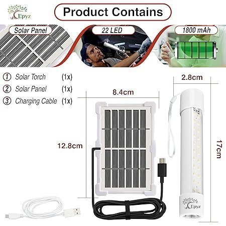 • Solar Rechargeable LED Tube Light – With long life due to inbuilt Lithium Ion Battery with overcharging protection, ABS Plastic base, Plastic diffuser solar LED Tube Light with High Lumens SMD2835- 22LED Chip light