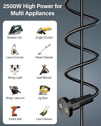 • ▶UNIVERSAL COMPATIBILITY – Ideal for home, office, kitchen, outdoor garden and A Wide Range Of Low & High-Wattage Home, Office, And Kitchen Appliances, Such As Toasters, drills, Coffee Makers, Blenders, Mixers, Kettles, Water Purifiers, Chimneys, Televisions, Vacuum Cleaners, Treadmills, Dryers, Pressure Washers, Grills, lighting, lawn, garden equipment decoration, phone chargers, vacuum cleaners, and other household electronics need a little extra length. NOTE – Only compatible with appliances