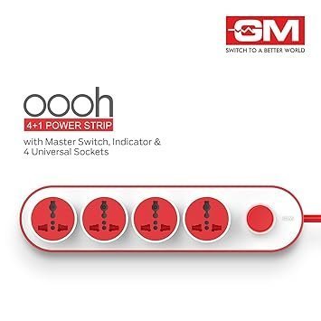 GM 10 Amp Extension Board with 2 Metre Heavy Duty Copper Extension Cord – 4 International Sockets, Master Switch, LED Indicator with Safety Shutter | GM 3257