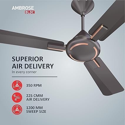 Havells 1200Mm Ambrose Bldc Motor Ceiling Fan|Premium Matt Finish, Decorative Fan, Remote Control, High Air Delivery|5 Stars Rated, Upto 60% Energy Saving, 2 Yr Warranty
