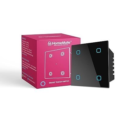 HomeMate® Wi-Fi Smart 4 Gang Touch Switch (Black, Pack of 1) | No Hub Required | Works with Alexa, Google Assistant & Siri