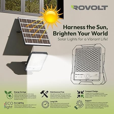 ROVOLT 60W LED Solar Flood Light with Remote Control & Motion Sensor | Aluminium Water Proof Body | 6000 mAh LiFePO4 Battery Solar Security Flood Light | 1 Year Warranty